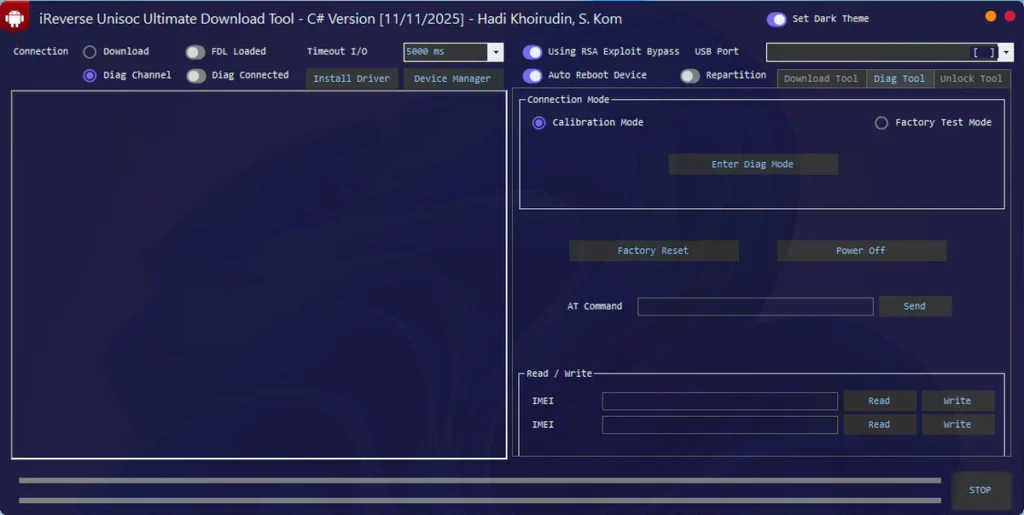 iReverse Unisoc Ultimate Download Tool, brings everything under one roof. It’s a single interface where you can flash firmware, handle FRP, read and write IMEI, enter diag mode, send AT commands, view partitions, and deal with new-security devices without running around for extra tools.