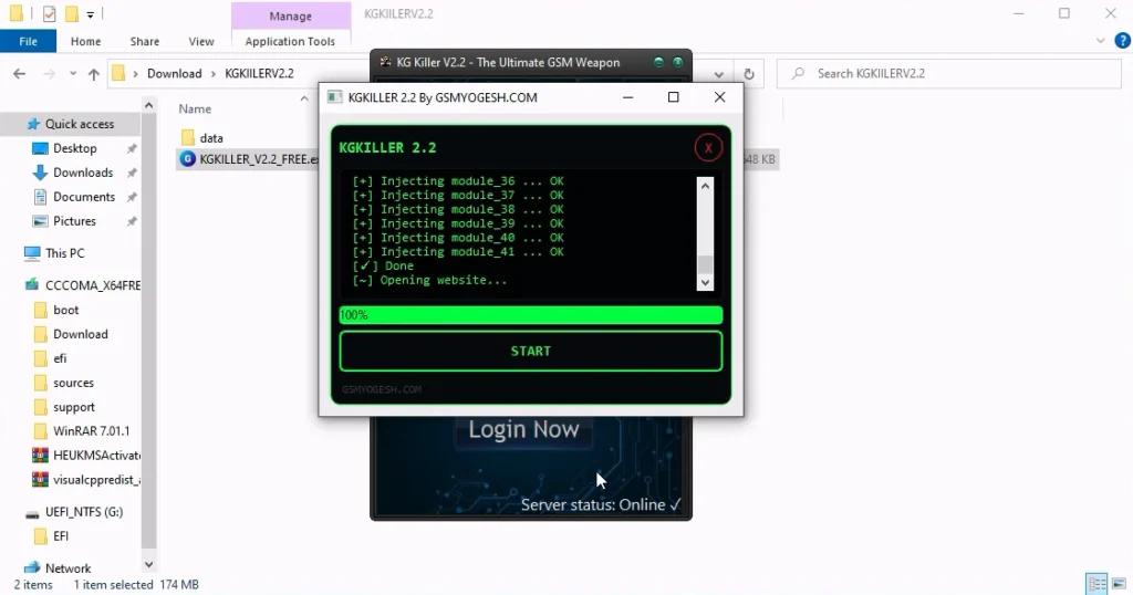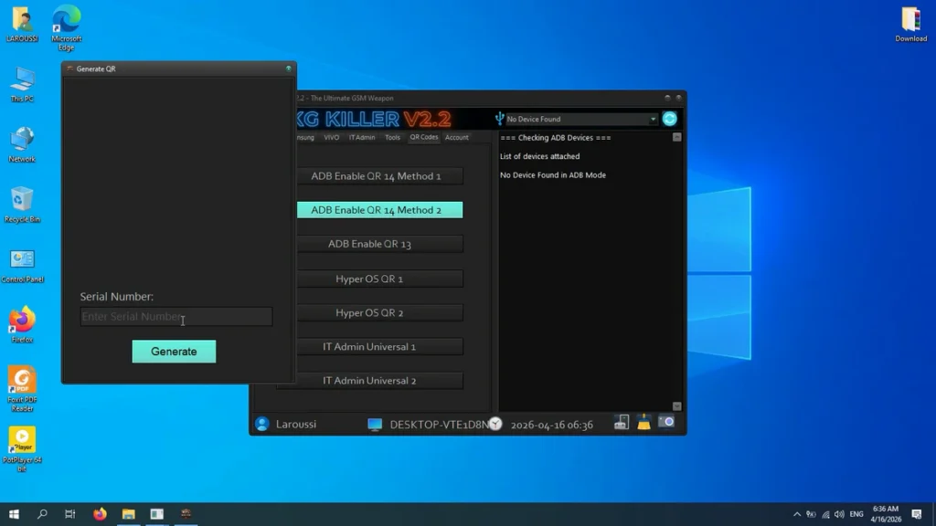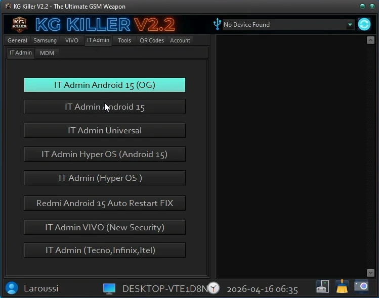KGKILLER Tool, completely login free! This version includes useful features like ADB read info, FRP universal, Samsung KG options, Samsung account remove, Vivo FRP methods, IT Admin tools, MDM support, QR code ADB enable, and many more. You don’t need any login or account. Just open the tool and use all features freely without any restriction.