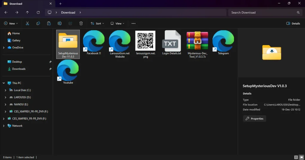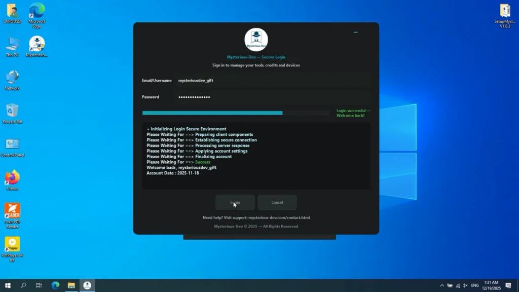 - Run the shortcut from the desktop “SetupMysteriousDev.exe”.