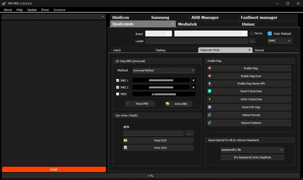 | Diagnostic Mode | Enable Diag (Root/No Root/Xiaomi APK)IMEI Repair (Universal Method, Dual IMEI)QCN Read/WriteRead/Write Critical DataXiaomi Unknown Baseband Fix | |